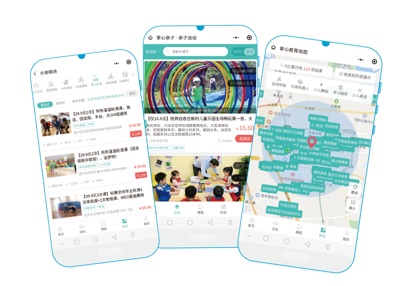 掌心教育地图,身边教育机构与亲子活动一目了然,为用户精准匹配3-5公里区域范围内教育机构及亲子商户活动信息。